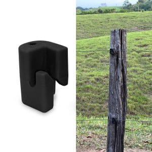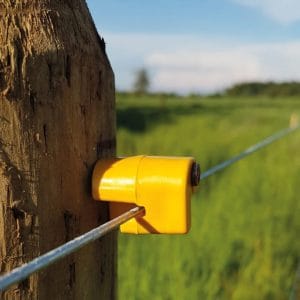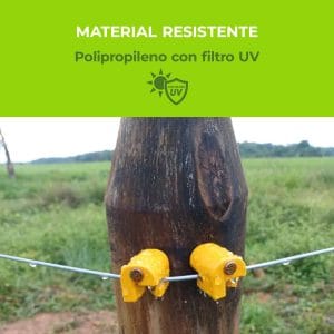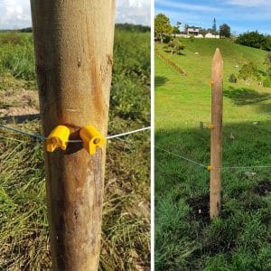 Úselo en estacones de madera en toda la distribución de la cerca eléctrica para aislar el cable electrificado.