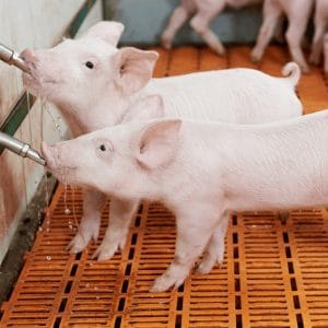 Bebedero tipo chupón para cerdos.