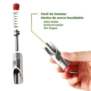 Bebedero tipo chupón de acero inoxidable para cerdos.