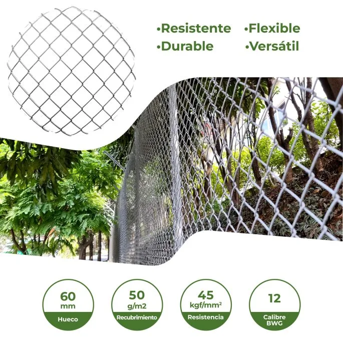 Algunas de las características más importantes de la malla eslabonada incluyen: