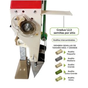 • Los 5 rodillos incluidos le otorgan versatilidad para sembrar una amplia gama de granos entre los que se contemplan: soya, maíz, fríjol, sandía, algodón, arveja, habichuela, garbanzos, maníes, entre otros.