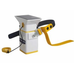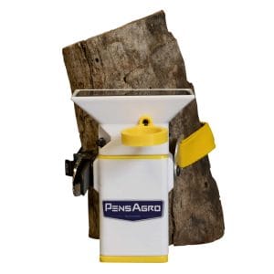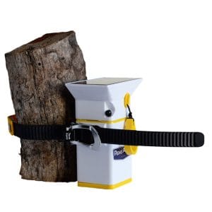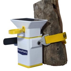Puerta automática a control remoto para uso rural. El equipo posee un pequeño panel solar para recargar su batería.